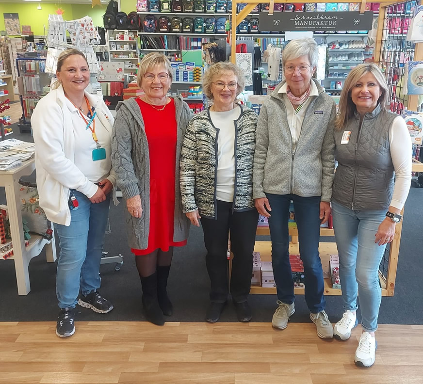Filialleiterin von DM Alzenau Frau Arzu Alibayli, 1. Vorsitzende des SfV, Laura Schön, 2. Vorsitzende, Friedericke Bühre-Weck, Schatzmeisterin Renate Linden und Silvia Stein von Ambiente in Alzenau.