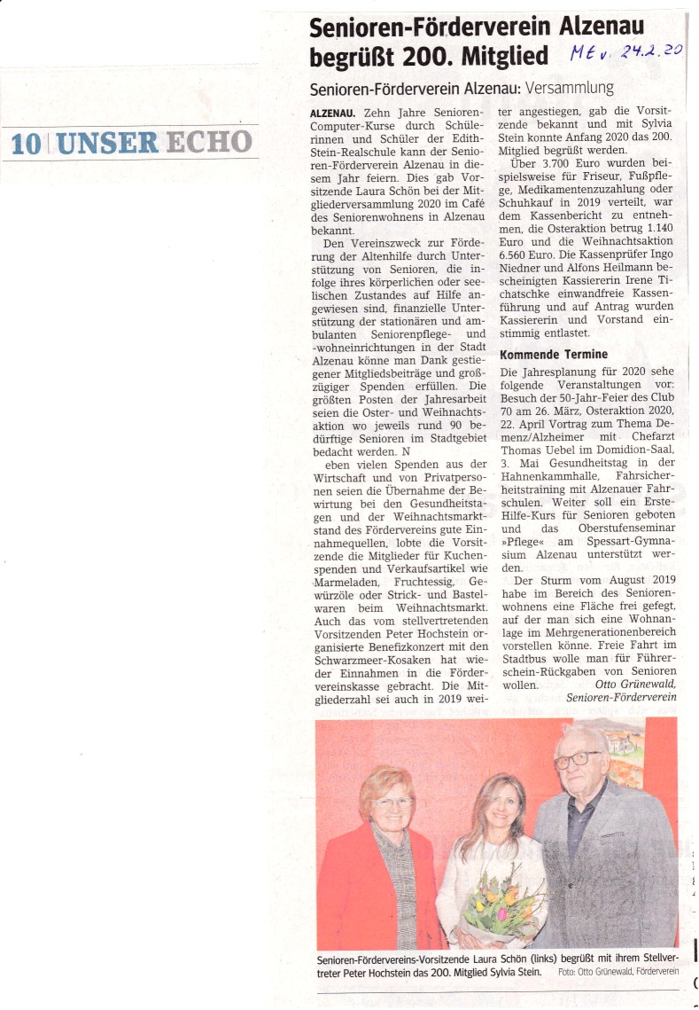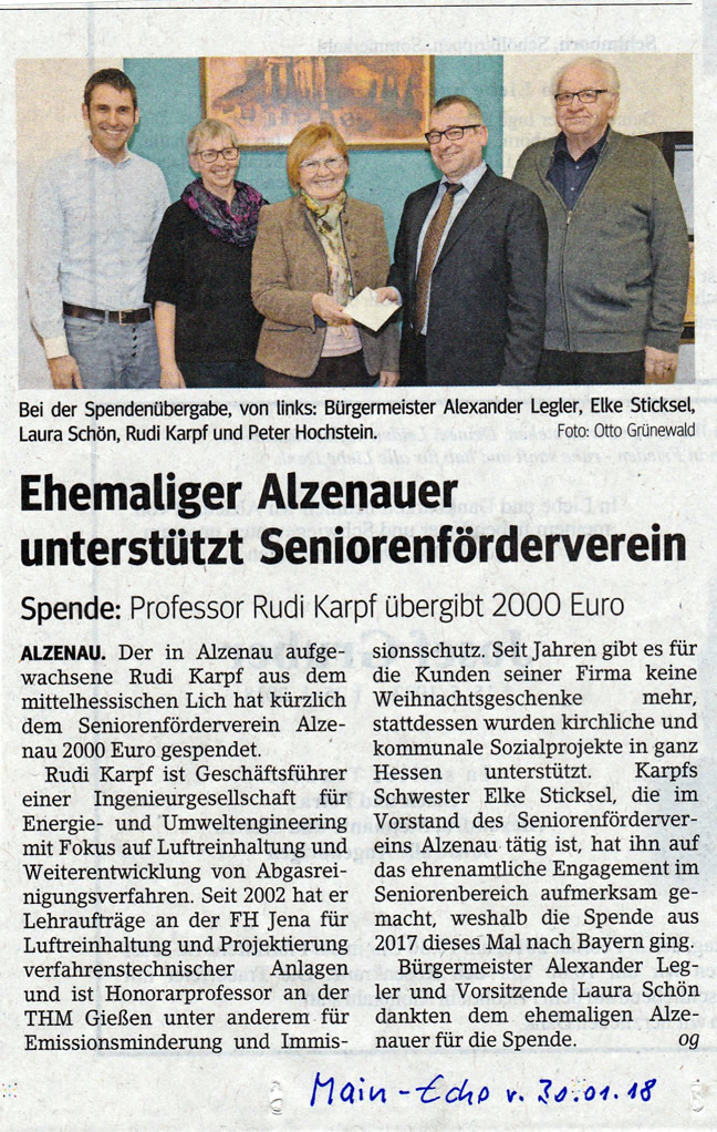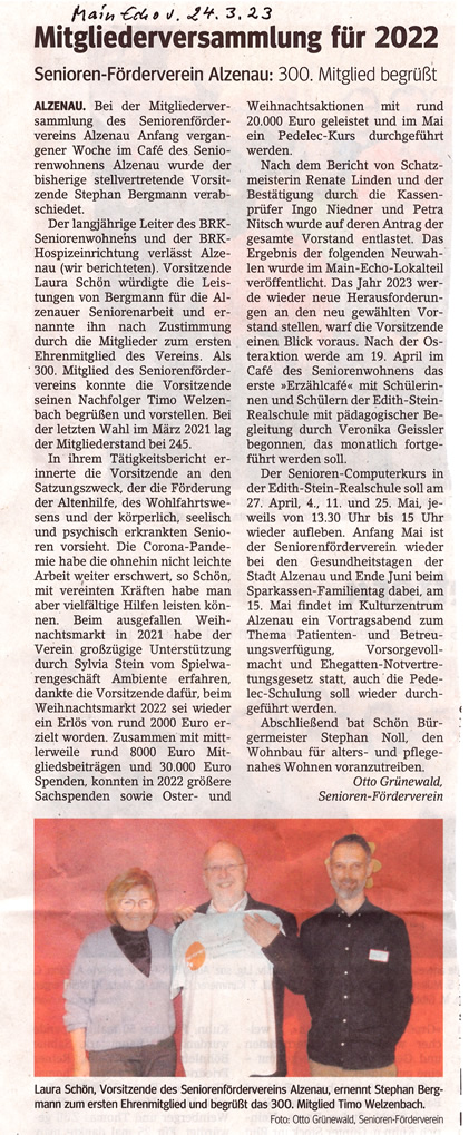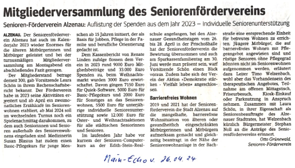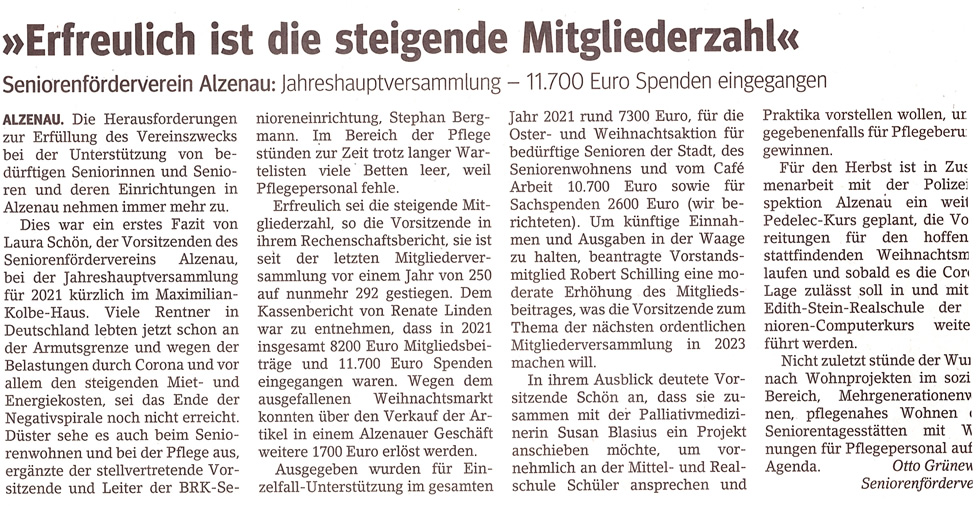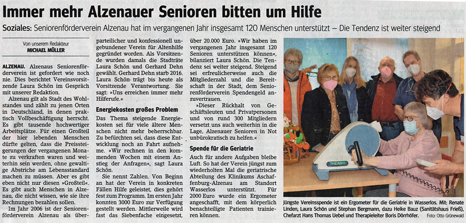 Erfreulich ist die steigende Mitgliederzahl Seniorenförderverein Alzenau: Jahreshauptversammlung - 11.700 Euro Spenden eingegangen