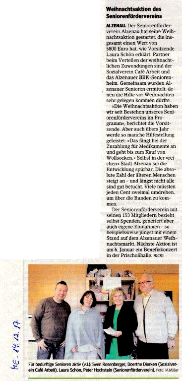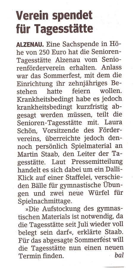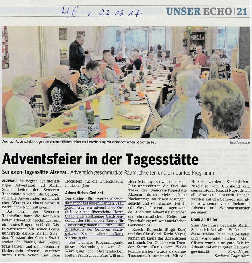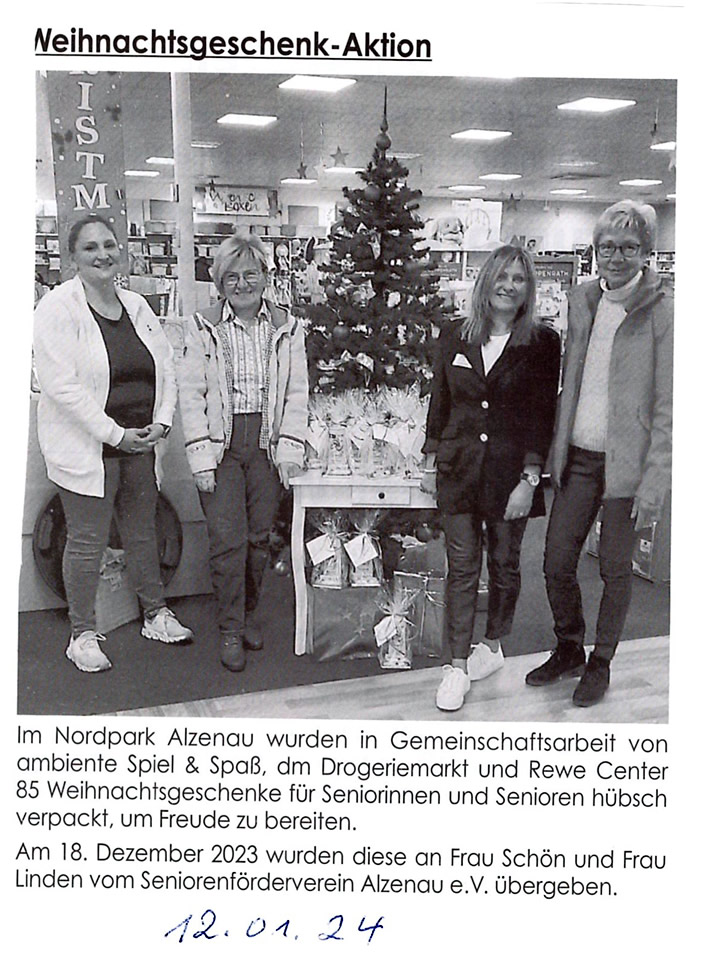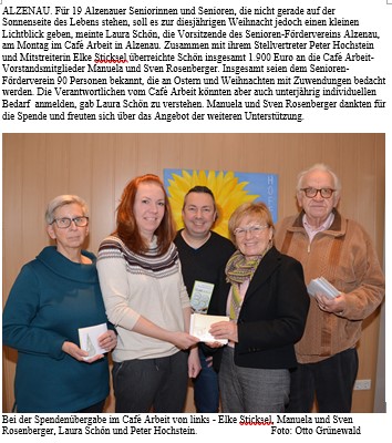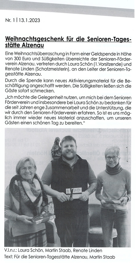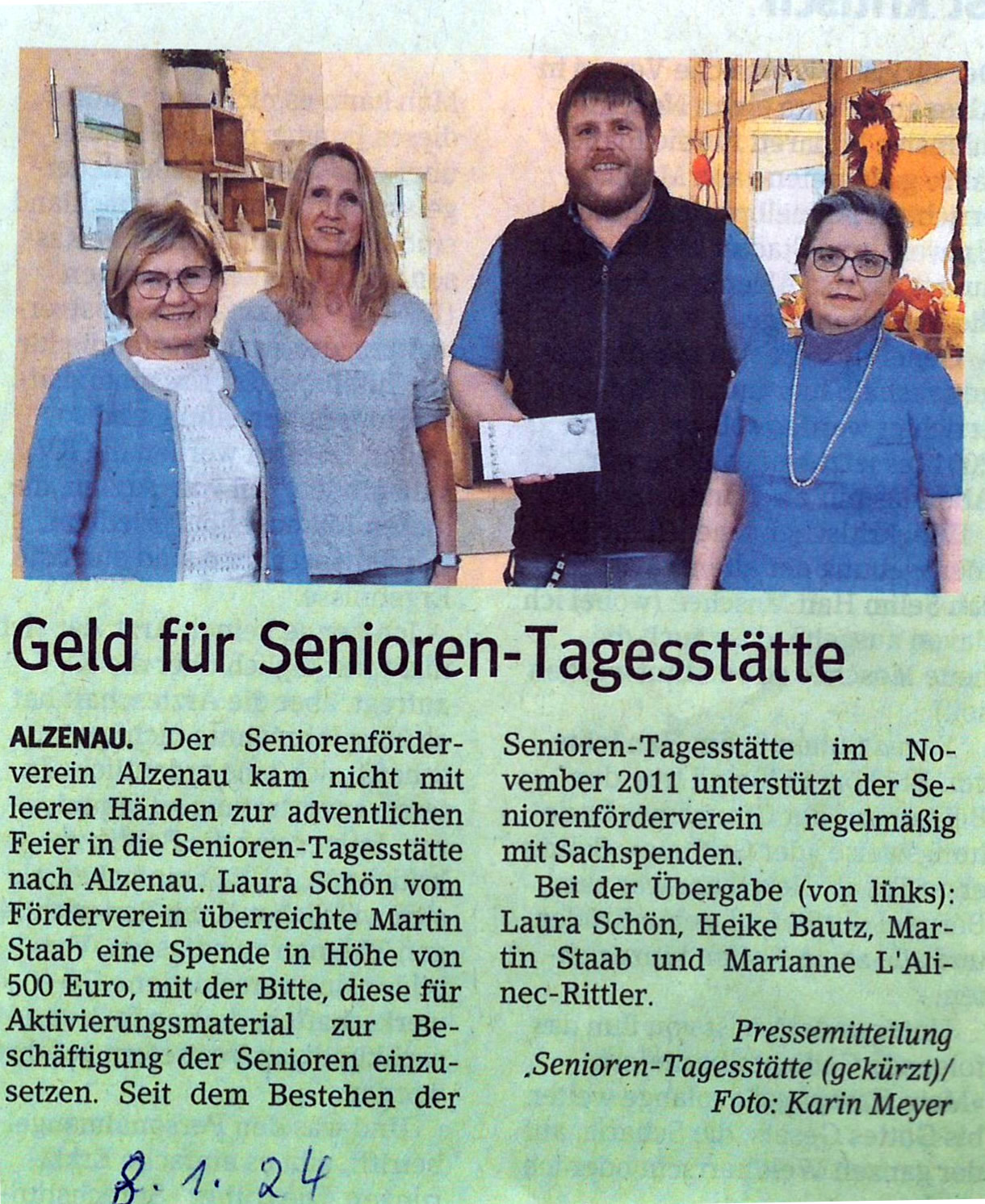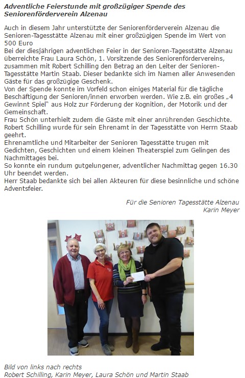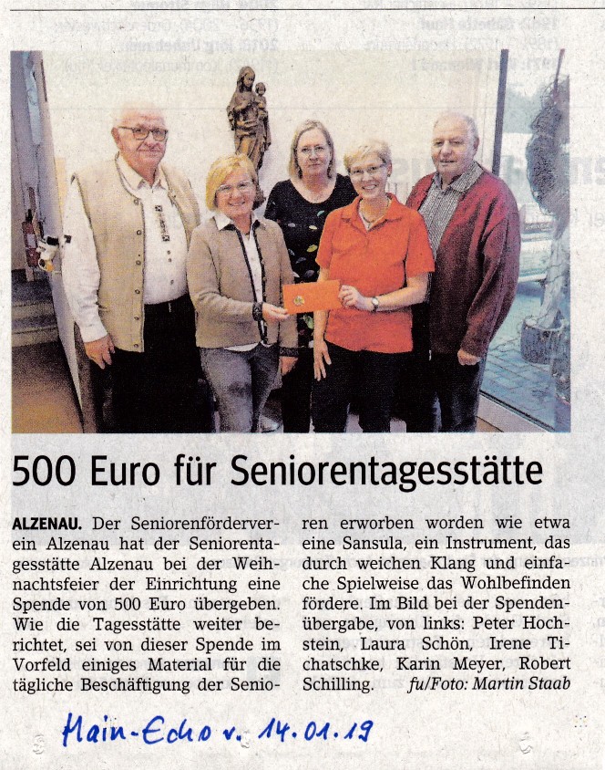 Weihnachtsgeschenk für die Senioren-Tagesstätte Alzenau