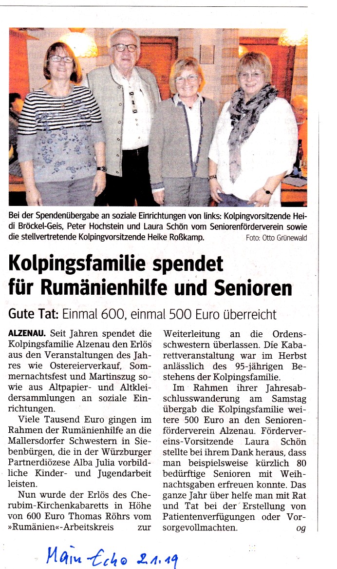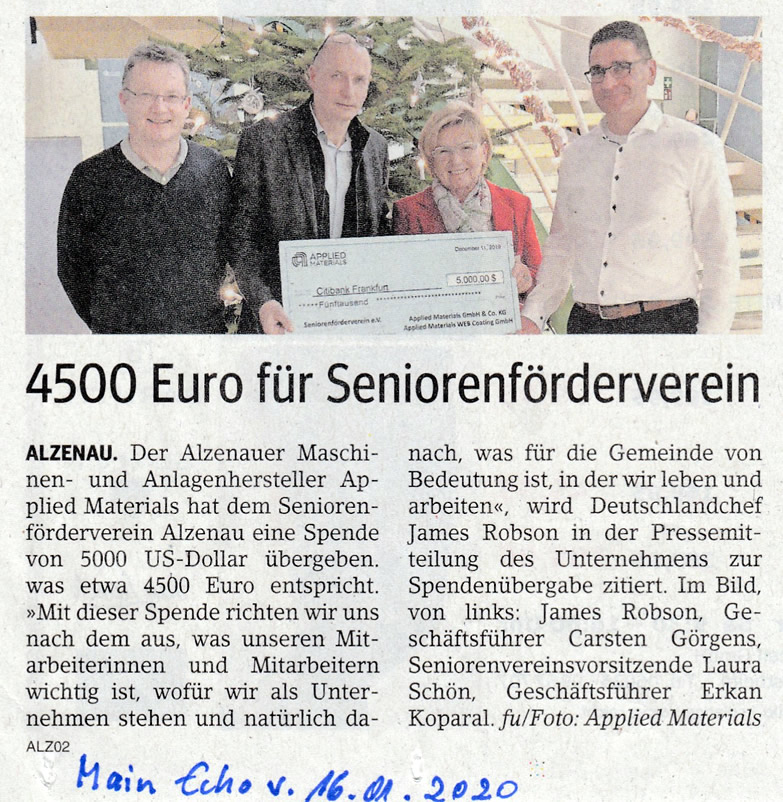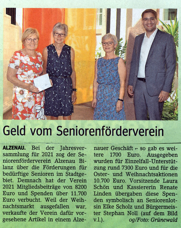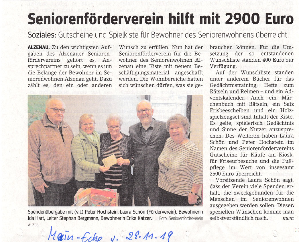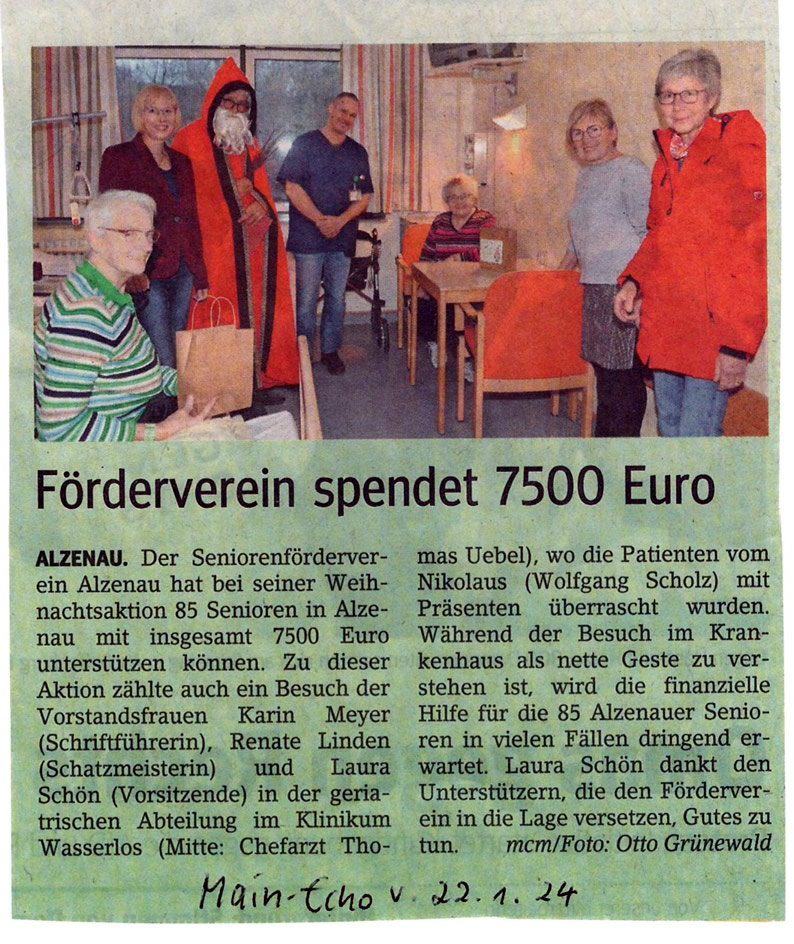 über 1000 Euro an den Seniorenförderverein Alzenau
