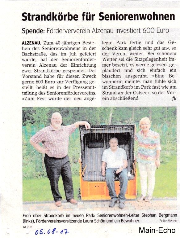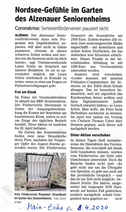 Nordsee-Gefühle im Garten des Alzenauer Seniorenheims Coronakrise: Seniorenförderverein pausiert nicht