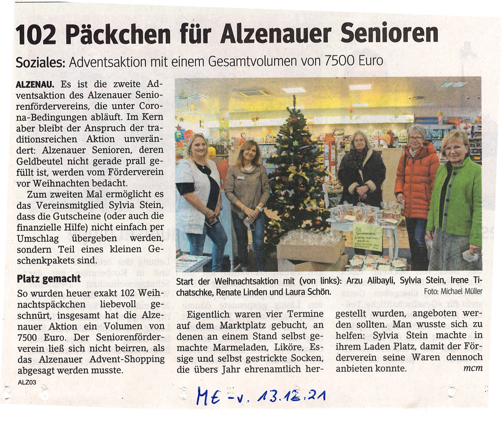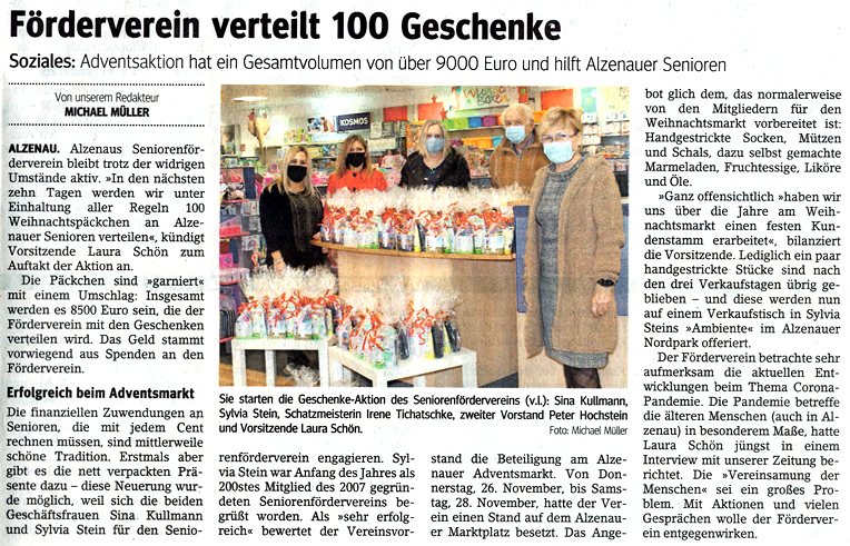 Förderverein verteilt 100 Geschenke Soziales: Adventsaktion hat ein Gesamtvolumen von über 9000 Euro und hilft Alzenauer Senioren