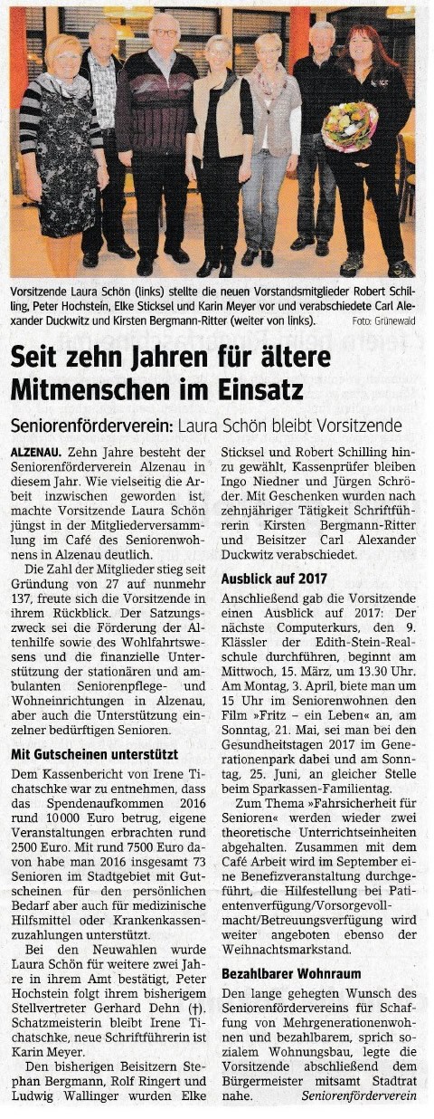 Seniorenförderverein sieht eine Menge Arbeit Jahresversammlung: Laura Schön und Gerhard Dehn bleiben an der Spitze des (fast) unveränderten Vorstandes