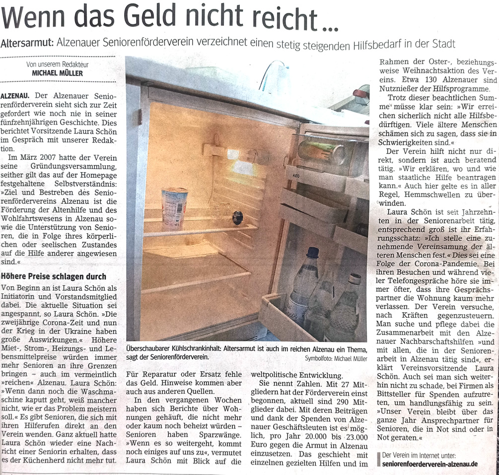 Auflistung der Spenden aus dem Jahr 2023 - Individuelle Seniorenunterstützung