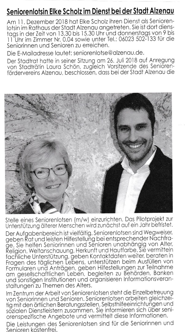 "Die Hemmschwelle ist bei vielen hoch" Laura Schön und Gerhard Dehn: Die Vorstandsspitze des Alzenauer Seniorenfördervereins bilanziert die ersten acht Jahre seit der Gründung