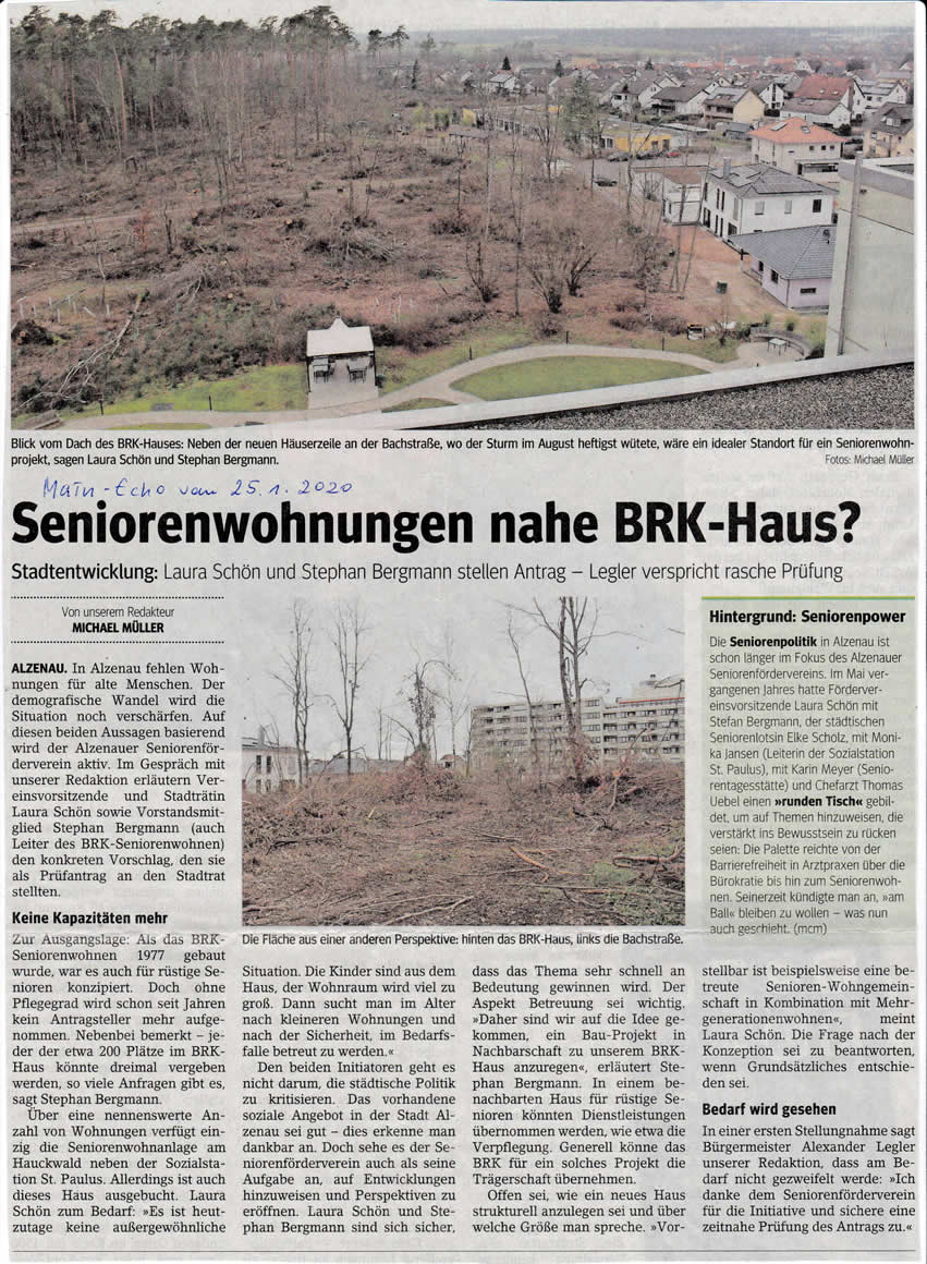 In Alzenau bleibt das Thema Mehrgenerationenwohnen aktuell. Für Bürgermeister Alexander Legler und den Seniorenförderverein Alzenau war am Mittwochabend eine Standortbestimmung angesagt. Bei einer Informationsveranstaltung sollte ausgelotet werden, ob es in der Stadt grundsätzliches Interesse an den neuen Wohnformen gibt.