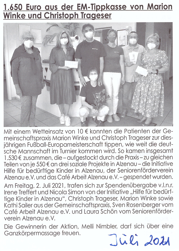 1.650 Euro aus der EM-Tippkasse von Marion Winke und Christoph Trageser