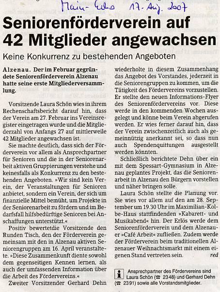Seniorenförderverein Alzenau - Neuer Verein stellt sich vor