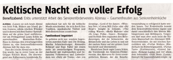 Keltische Nacht ein voller Erfolg - Benefizabend: Erlös unterstützt Arbeit des Seniorenfördervereins Alzenau - Gaumenfreuden aus Seniorenheimküche