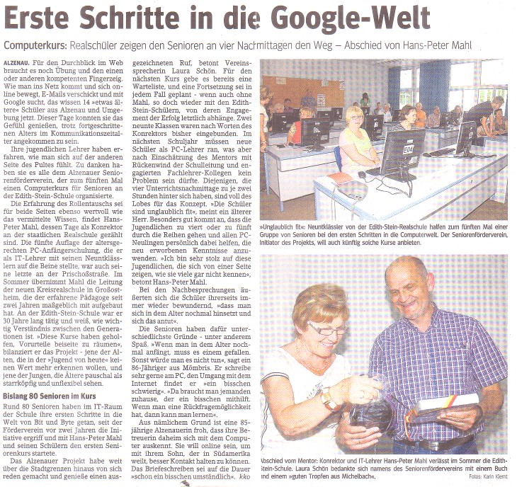 Computerkurs: Realschüler zeigen den Senioren an vier Nachmittagen den Weg - Abschied von Hans-Peter Mahl