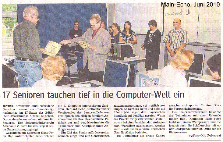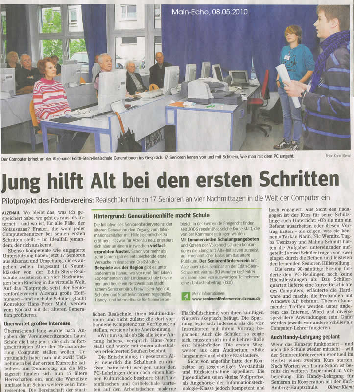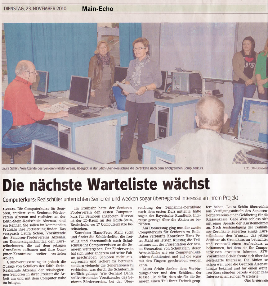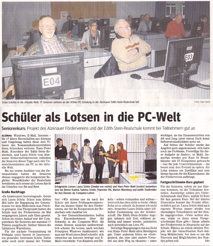 Schüler als Lotsen in die PC-Welt Seniorenkurs: Projekt des Alzenauer Fördervereins und der Edith-Stein-Realschule kommt bei Teilnehmern gut an