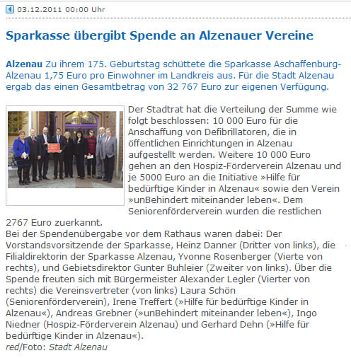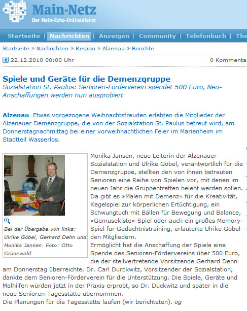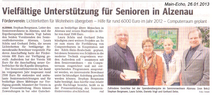 Vielfältige Unterstützung für Senioren in Alzenau Förderverein: Lichterketten für Wohnheim übergeben - Hilfe mit rund 6000 Euro im Jahr 2012 - Computerraum geplant