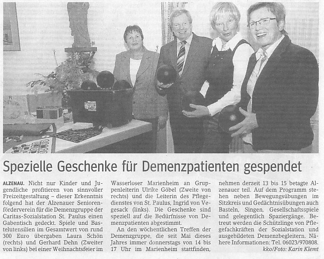 Spiele und Geräte für die Demenzgruppe - Sozialstation St. Paulus: Seniorenförderverein spendet 500 Euro, Neuanschaffungen werden nun ausprobiert