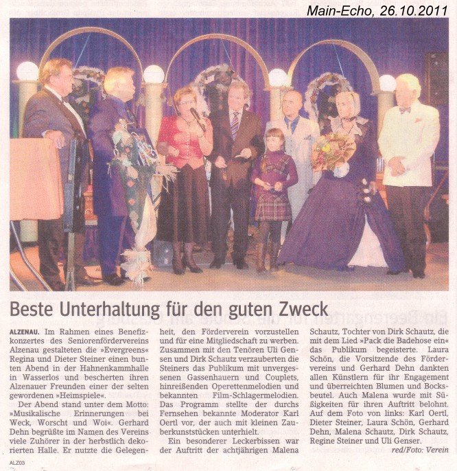 Beste Unterhaltung für den guten Zweck - Benefizkonzert des Seniorenfördervereins mit den "Evergreens" Regina und Dieter Steiner am 22.10.2011