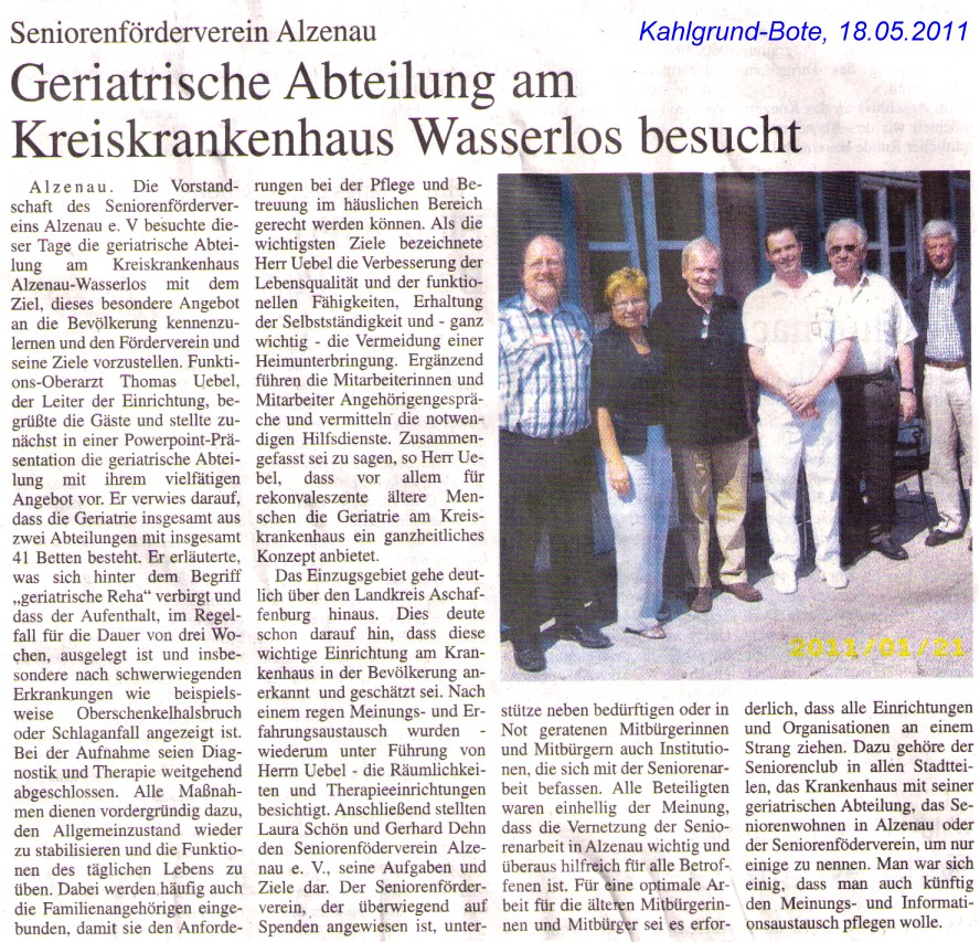 Seniorenförderverein Alzenau - Geriatrische Abteilung am Kreiskrankenhaus Wasserlos besucht