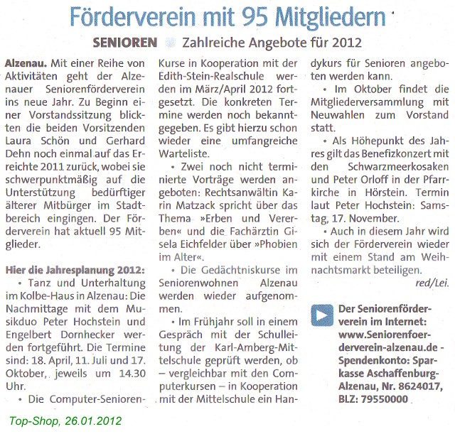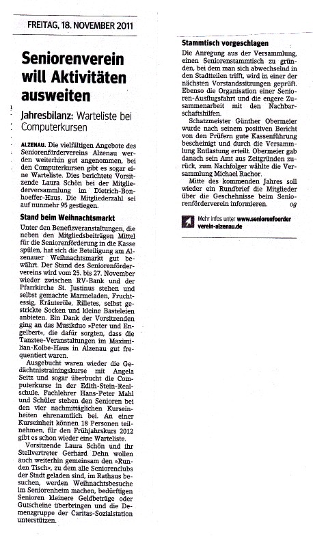 Förderverein mit 95 Mitgliedern Senioren: Zahlreiche Angebote für 2012
