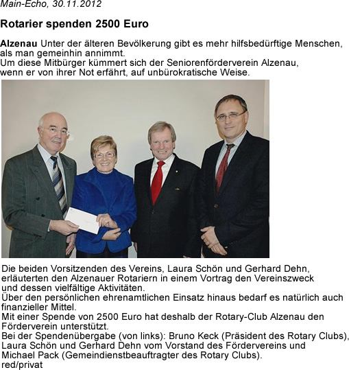 "Spendenübergabe an den Seniorenförderverein Alzenau durch Rotary Club "