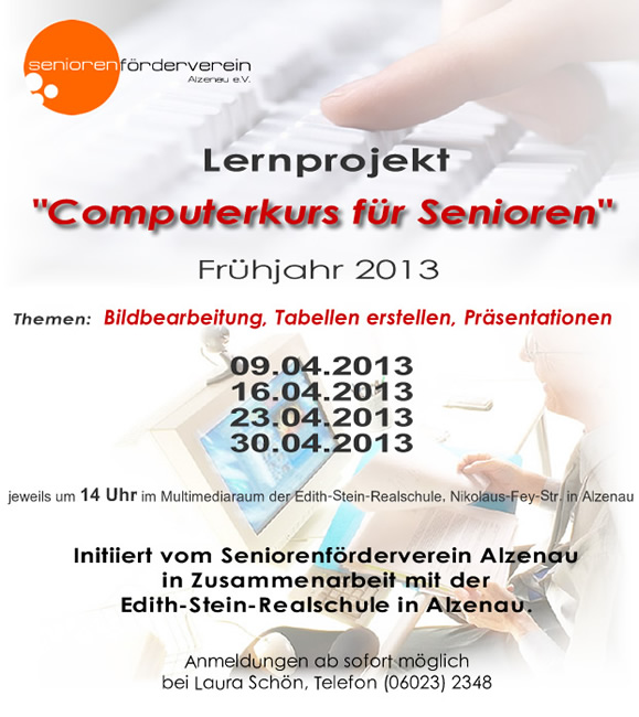 In vier Unterrichtseinheiten werden Themen wie: Layout, Excel für Anfänger, neue Medien (Handy/Tablet) vermittelt.